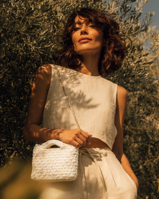 “Bolsos artesanales de crochet, ediciones limitadas tejidas con calma para amantes del estilo Mediterráneo y la moda sostenible”.
