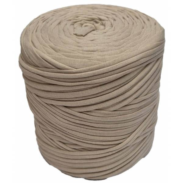 Bobina de trapillo, de algodón y licra con un tamaño enrollado de 14x14 cm. podrás tejer hasta una superficie de 50 x 50 cm.