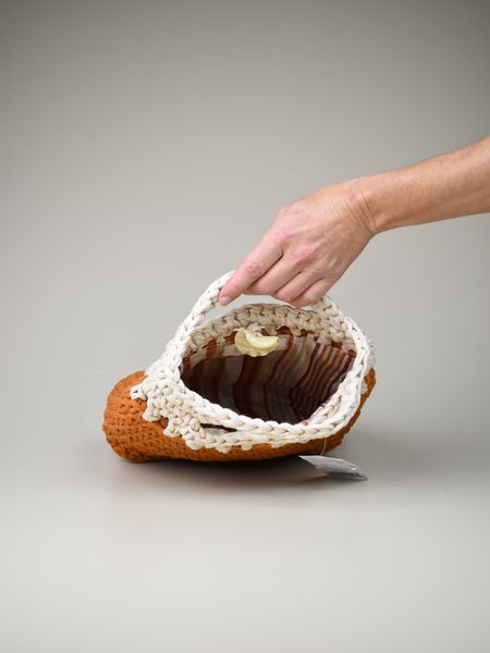 Lavado: A mano con agua fría y jabón neutro. Evita frotar las texturas con fuerza. Secado: En horizontal sobre toalla, lejos del sol directo. Cadena: Limpia con paño seco. Almacenamiento: Guarda en lugar seco, relleno con papel para mantener su forma compacta.