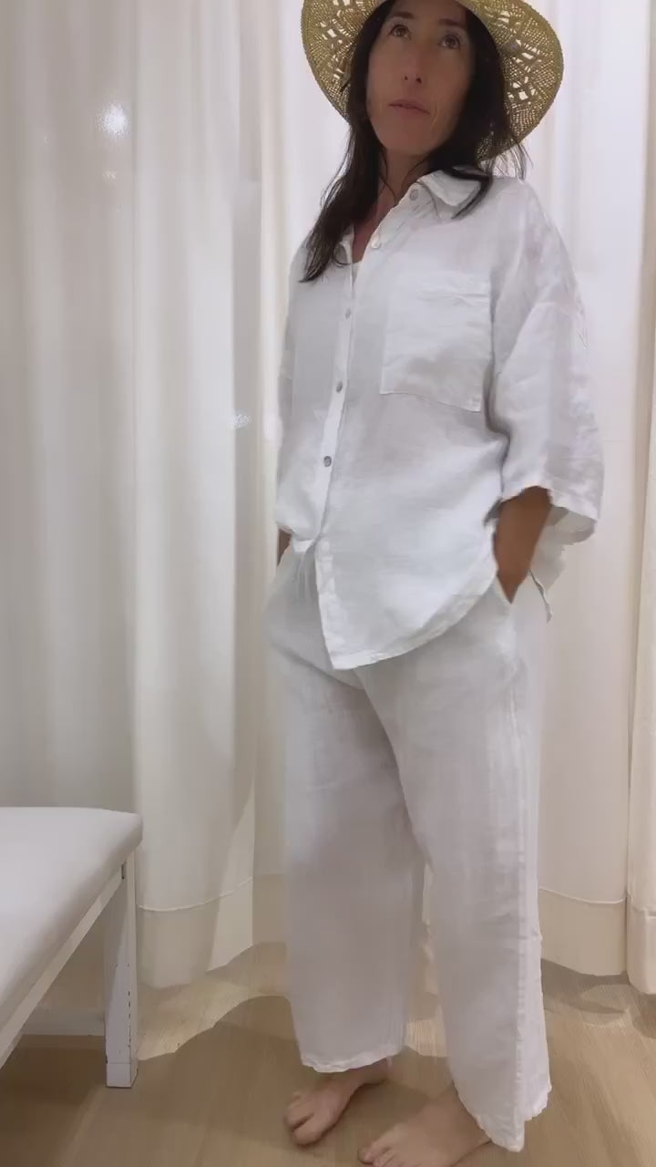 Camisa Lino cuello pico, en lino 100%. Bolsillo lateral. Mangas Francesas en mariposa.