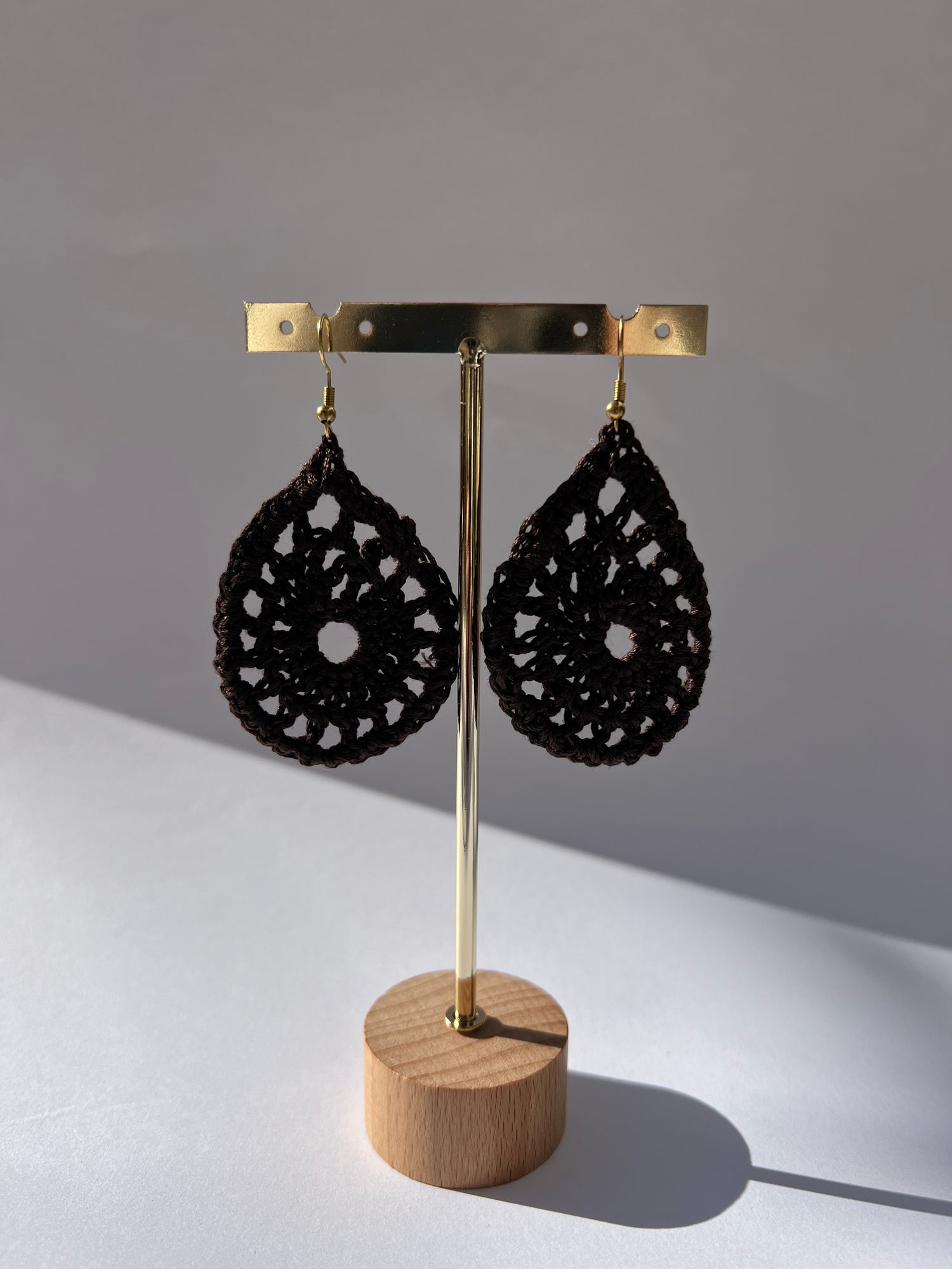 "Estos pendientes de crochet en color chocolate están hechos a mano con amor y algodón de perlé.