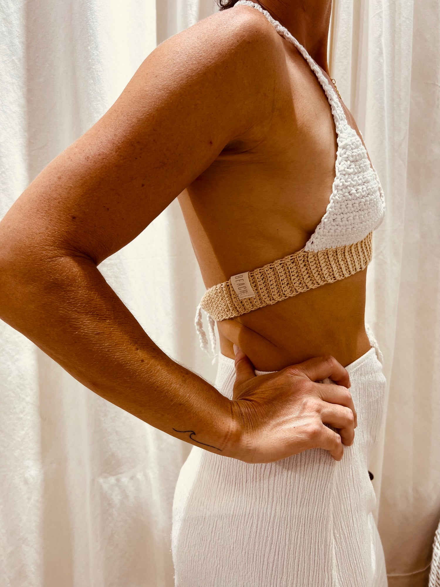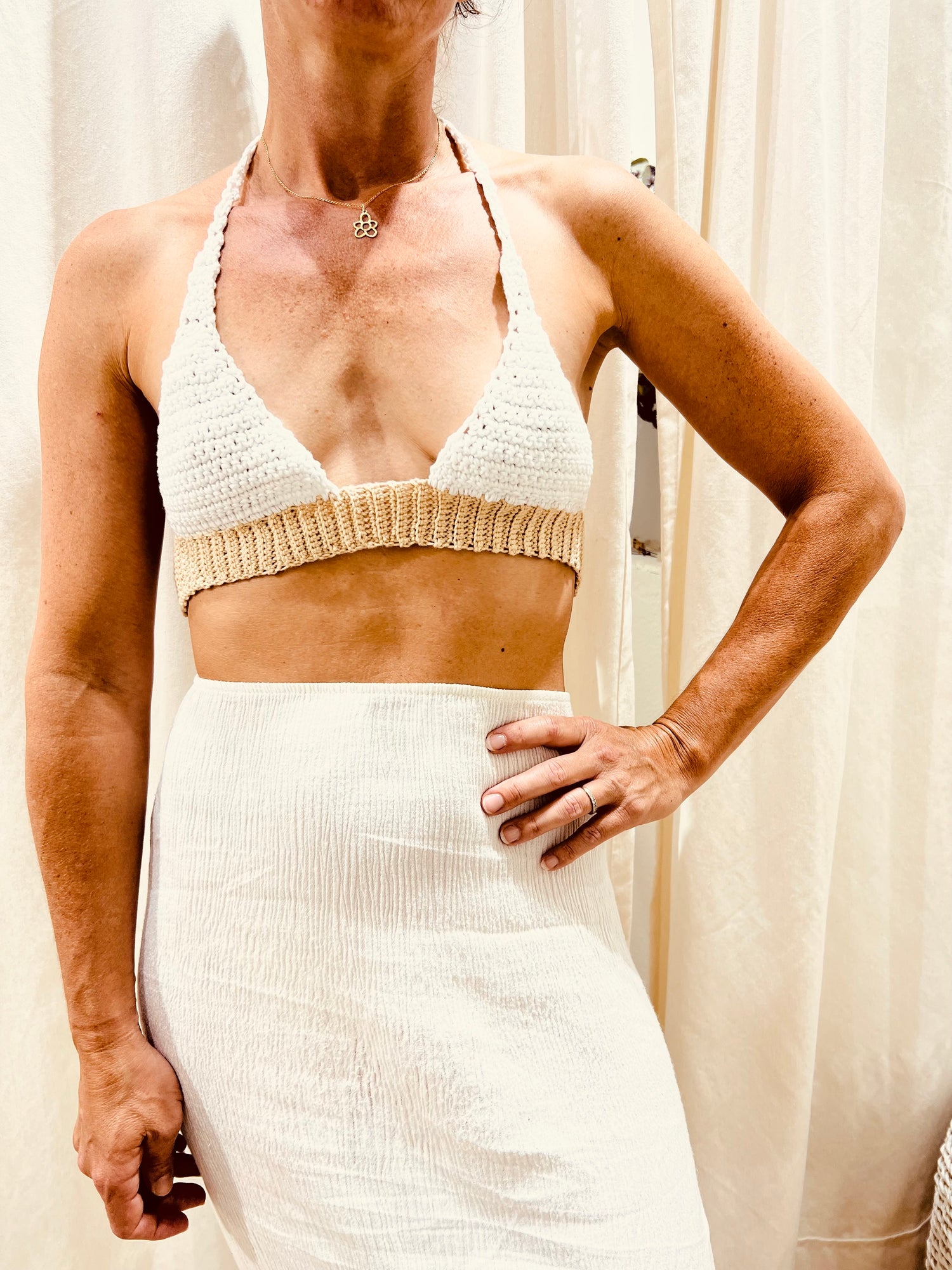 El top Estellencs es una prenda única 100% hecha a mano por nosotras, en algodón orgánico español.