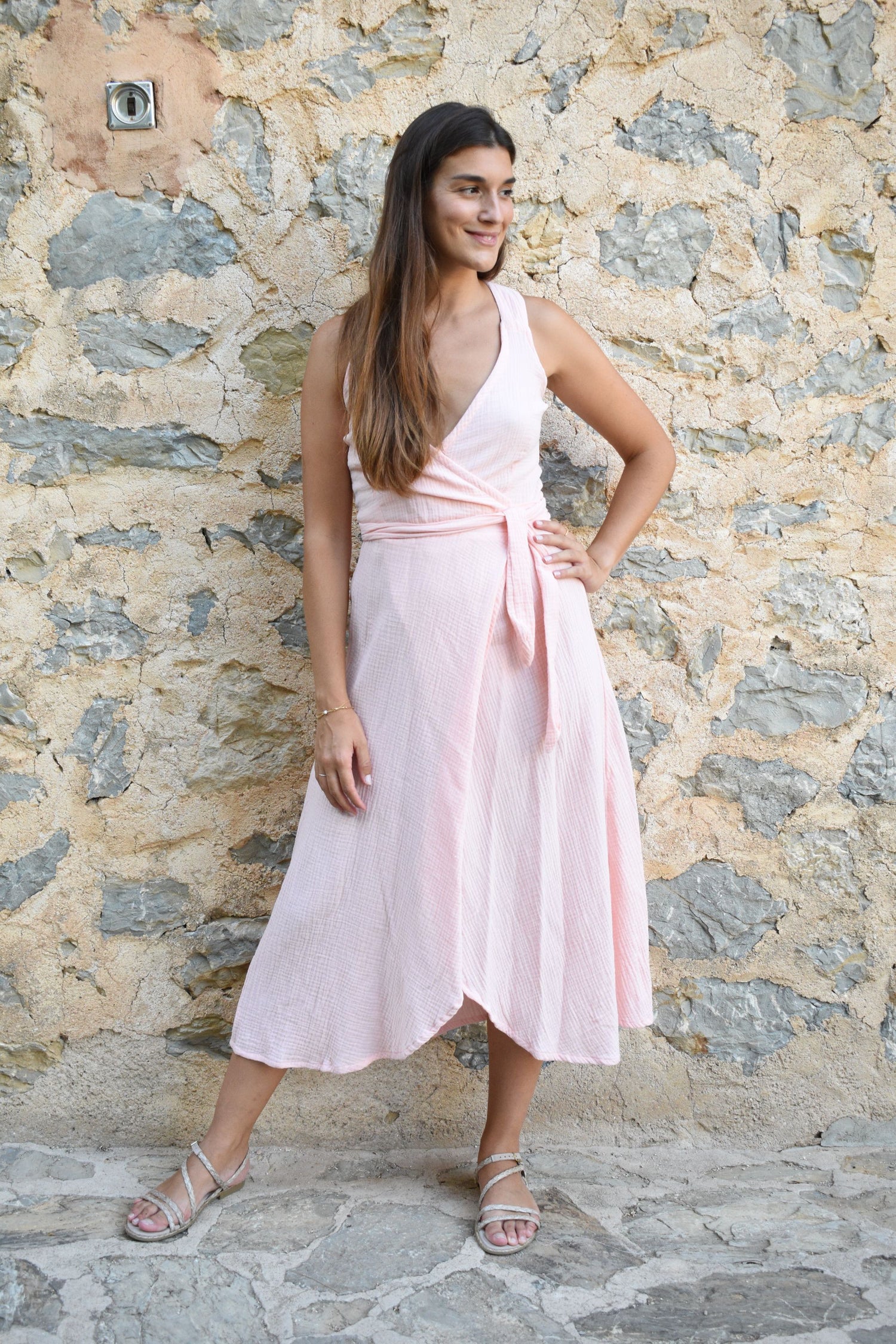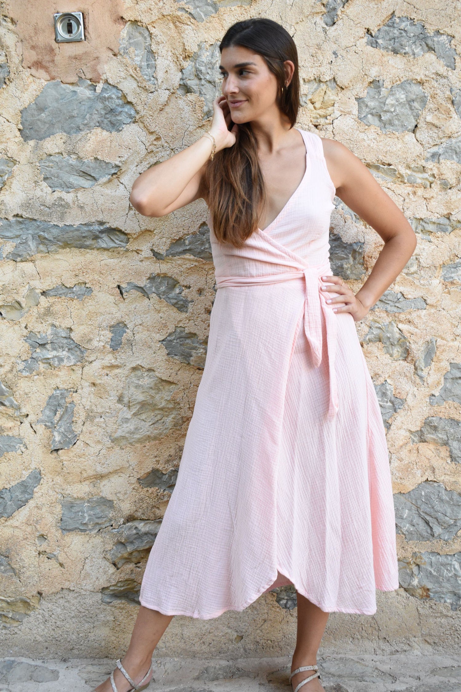 Descubre el Vestido midi algodón Ellena, hecho de algodón orgánico, con cruzado en la espalda.